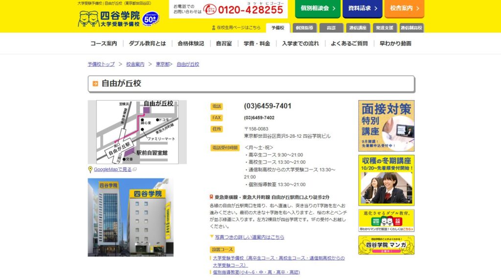URL | https://www.yotsuyagakuin.com/map/jiyugaoka.html |