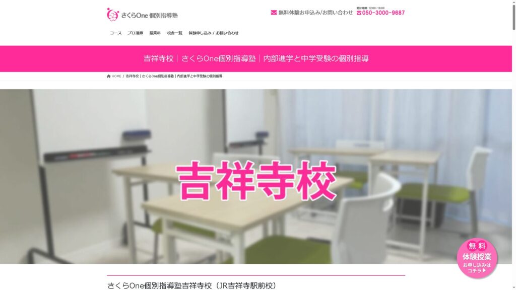 さくらOne個別指導塾吉祥寺校は社会人プロ講師がマンツーマン指導をする個別指導塾です。