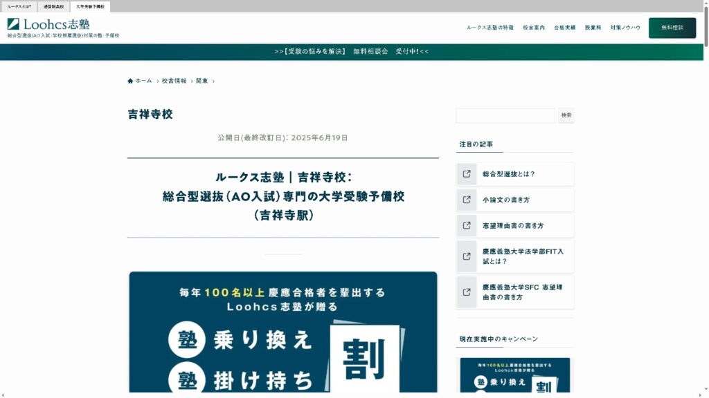 多数の塾がある吉祥寺エリアでは、総合型選抜・小論文対策の塾の選択肢は豊富です。