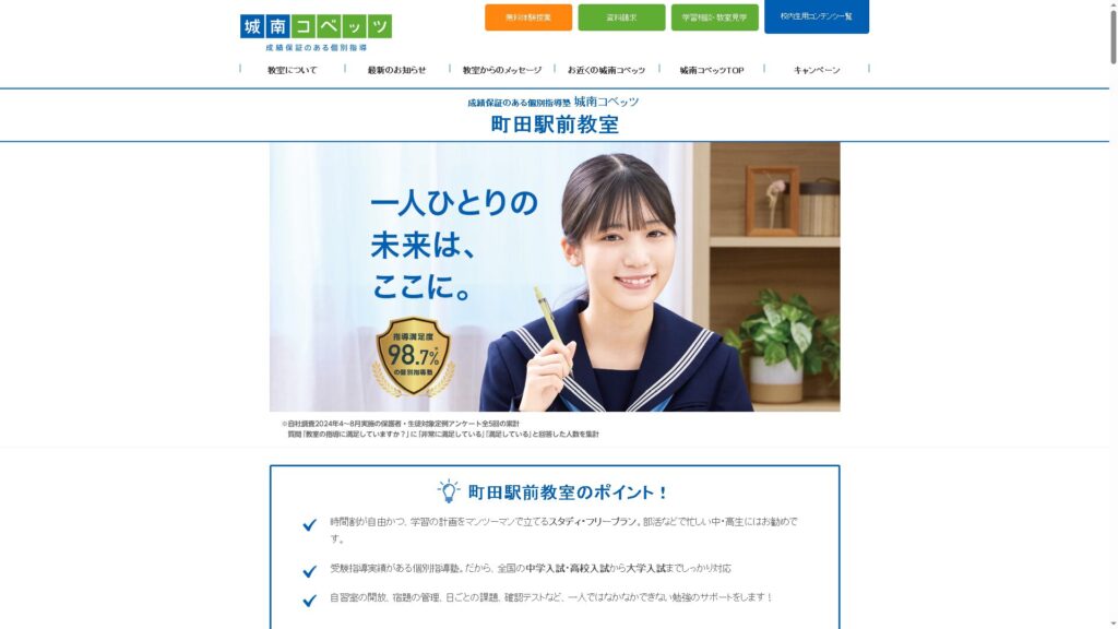 城南コベッツ町田駅前教室は個別指導塾でマンツーマンによる指導を行います。