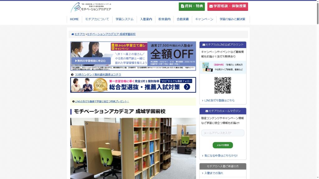 モチベーションアカデミア 成城学園前校は中学生から高校生までを対象とした塾です。