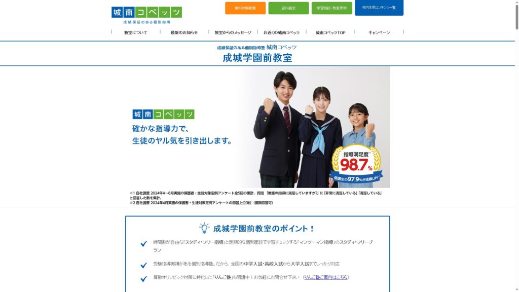 城南コベッツ 成城学園前教室は個別指導で受験対策を中心に授業を行う塾です。